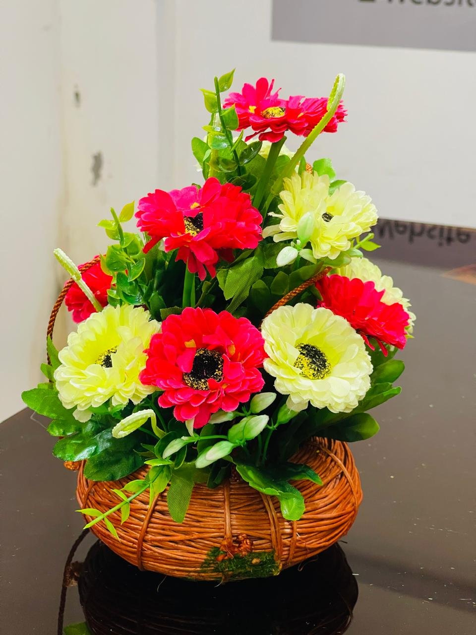 উপাদান: উচ্চ-মানের ফাইবার ডালিয়া/ডেজি ফুল, বেতের ফাইবার বাস্কেট।